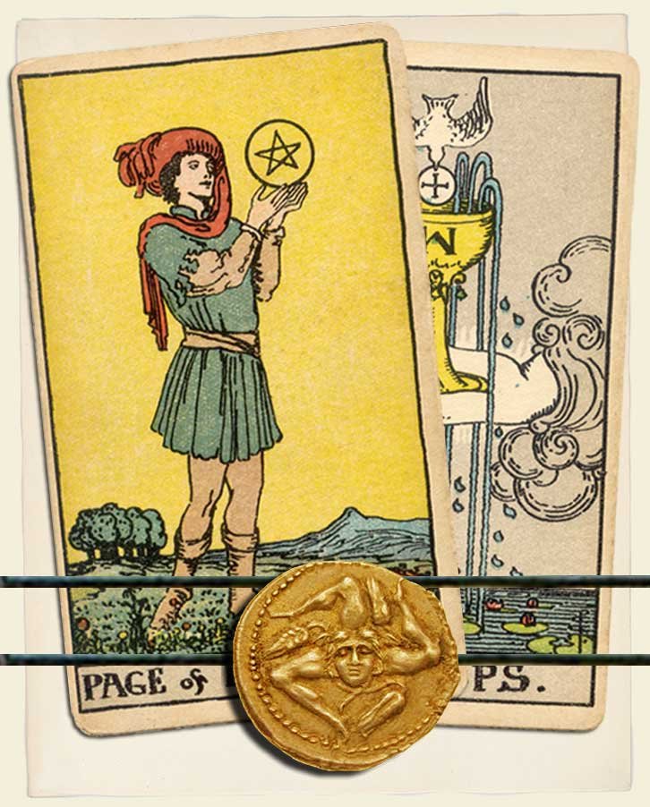 Well, howdy there folks! Today we’re talking about the Page of Pentacles and Ace of Cups tarot combination in regards to love and relationships. Now, this here combo is considered a darn good sign for all you lovebirds out there. It’s directed by two guiding influences: (A) Goal Oriented and (B) New Feelings.