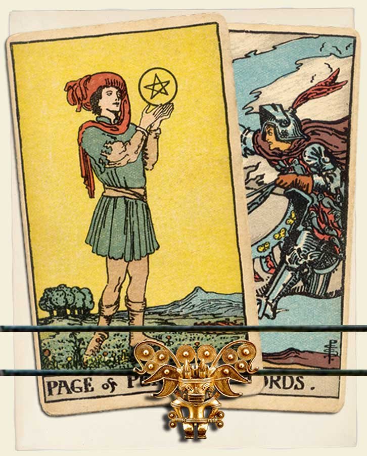 Page of pentacles and Knight of swords tarot combination is a sign that two forces: (1) Consistent and (2) Ambitious are jointly affecting you today. In a nutshell, there are things you want, but that you can’t have, at least this is what you think. Perhaps if you attempted to gain a little traction in your progress you will be able to find the time to dedicate your heart to your goals. Give it your best shot.