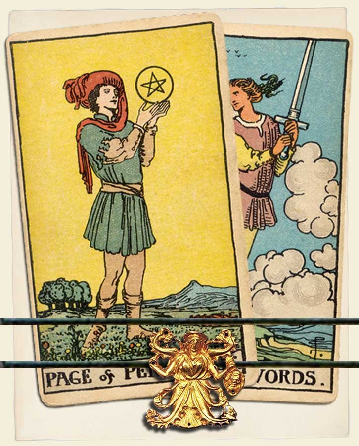 Page of pentacles and Page of swords combination provides an insight into a significant event in your future, which is influenced by the arcane forces of STAR STUDENT and CHATTY. You have been serving as a sort of mentor to someone you work with. This coworker may seem to be an annoyance, but don’t stop your efforts to teach them. They have been singing your praises to those in management. In doing so, and in demonstrating their newly-learned skills, they will convince the manager to consider you more favorably.