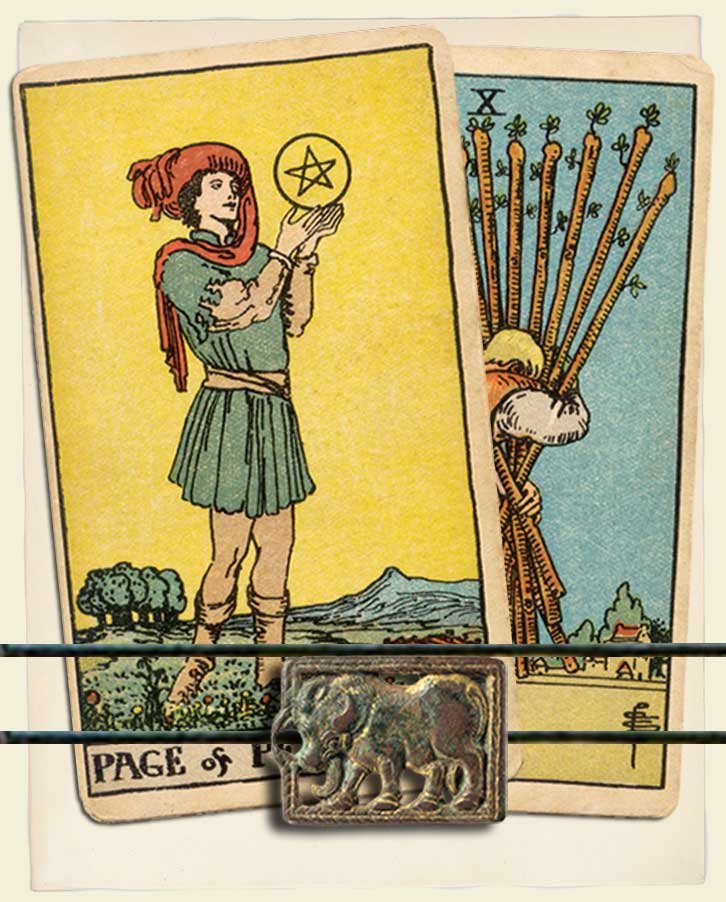 The Page of Pentacles represents skill development, while the Ten of Wands symbolizes obligation. Together, they offer insight into a significant event in your future that will arise from honing your skills and fulfilling your responsibilities.
