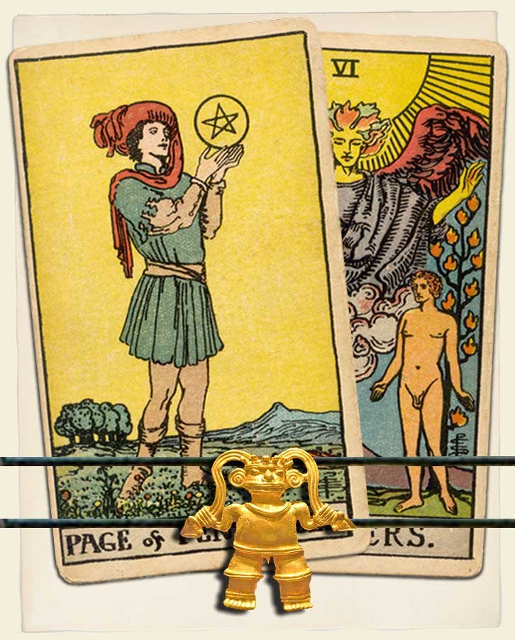 Page of pentacles and The Lovers combination signals that two mystic forces: 1) Ambitious and 2) Choices are influencing you at this moment. In essence you have many great goals. You are ambitious and that is a great thing, but the choices are endless and that causes you confusion at times. There are in fact many, many options. You will feel less overwhelmed if you focus on your own interest and skill sets. What are you interested in and also good at? List those things and select your favorite, then start working away at your big dreams.