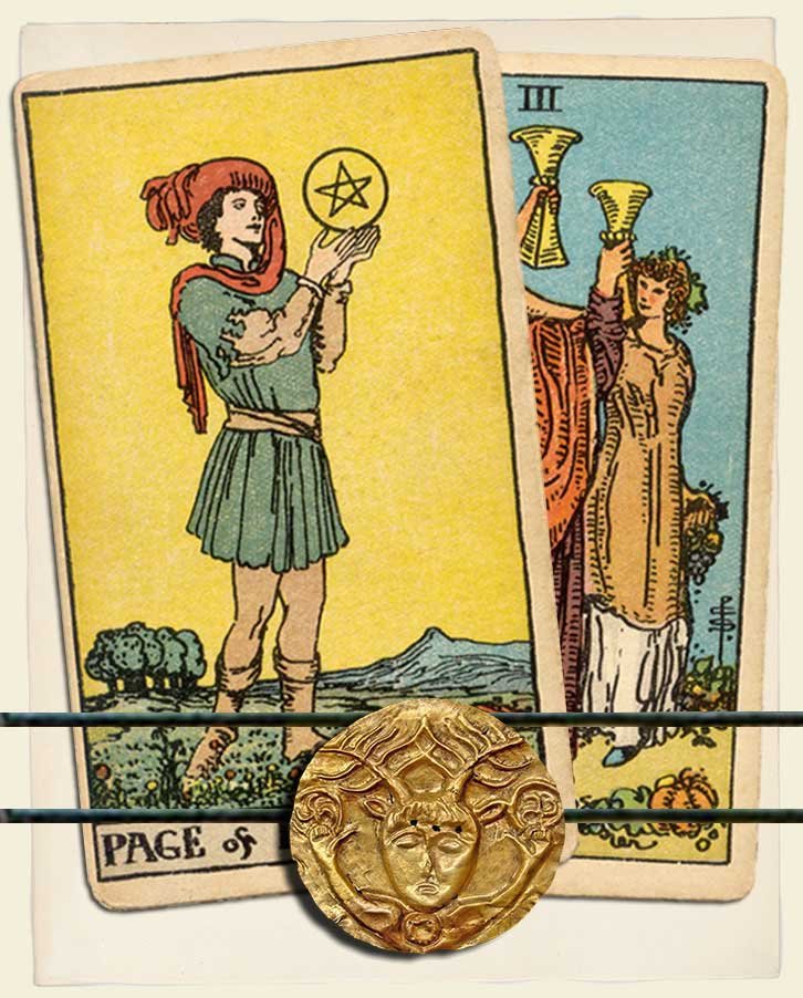 Oh, my dear! The Page of Pentacles and Three of Cups combination for love and relationships is a truly wonderful sign. Let me explain to you what the arcane forces have in store for you.
