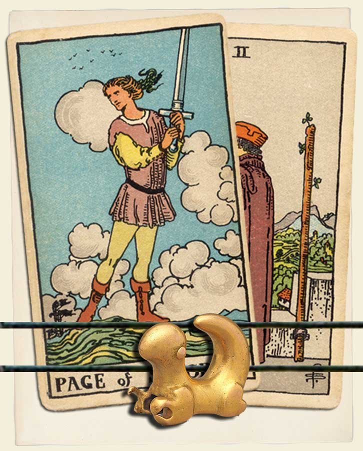 Page of swords and Two of wands tarot combination gives a hint about a situation in your future, which is directed by the guiding influences of (A) Inspired and (B) Planning (as clarified by Two of wands). The Page of Swords indicates that there is something fast-moving and exciting happening in your life right now. Pages are not usually around when they’re supposed to be working, but this one has been keeping you up late at night with his stories. You can almost see him smiling as he tells you how he outwitted an enemy or two on his way to delivering a message from the king. This excitement will likely continue for some time, so enjoy it while it lasts. The Two of Wands indicates that you have already begun thinking about what comes next in this planning phase. Be sure to take advantage of the energy here before things get bogged down again.