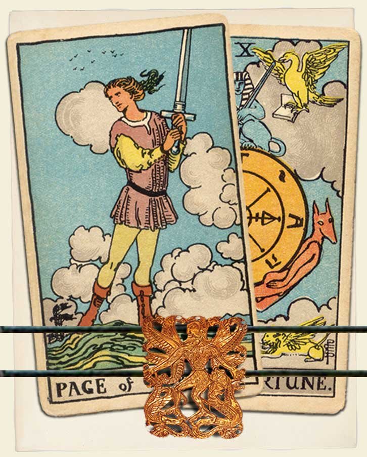 Page of swords and Wheel of Fortune together means that two forces: 1) Thirst For Knowledge and 2) Decisive Moments are affecting you today. To put it differently, it means that your curiosity is piqued, but there may be a risk involved in exploring new territory. What’s the advice of this pair? The Page of swords represents an investigative energy that can lead to truthfulness. This card indicates that you have something important to learn about someone or some situation in your life. It also indicates a desire to know more so as not to make the same mistake again. The Wheel of Fortune represents karmic ripples through which everything we do comes back to us as consequences. There is a moment when things seem balanced on the brink of change – often for the better – and then something happens (usually bad), throws things out-of-balance, and sends them hurtling towards disaster.