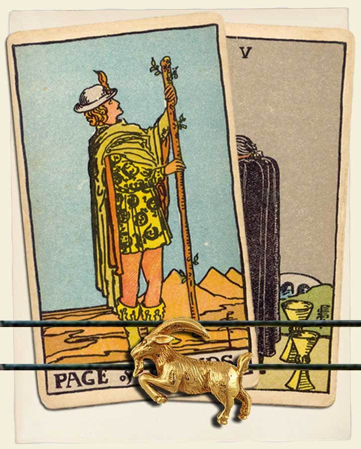 Page of wands and Five of cups combination indicates that two tarot influences: 1) Limitless Potential and 2) Disappointment are altering your life path today. The Page of Wands speaks of exploration, excitement and freedom. On the other hand, Five of Cups talks of loss, grief and self-pity. You can do anything you set your mind to, this combo reminds us not to victimize ourselves or wallow in self-pity. We must get up and get going to reach our full potential.