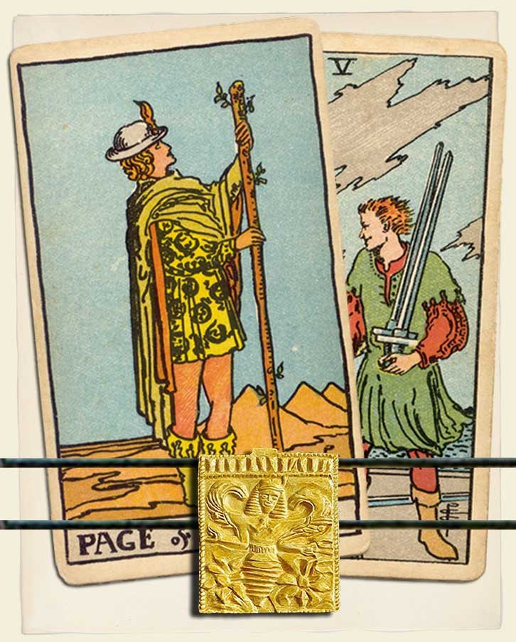 Ah, the Page of Wands and Five of Swords combination – an interesting pair indeed. This union indicates that there are conflicting energies at play when it comes to matters of the heart. On one hand, the Page of Wands represents a free-spirited energy that is open to adventure and exploration in relationships. However, on the other hand, the Five of Swords brings forth an aggressive energy that could lead to conflict and hurt feelings.