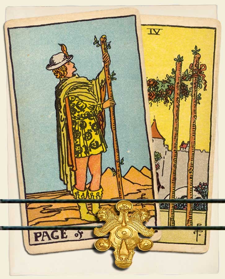 Page of Wands and Four of Wands combo interpretation