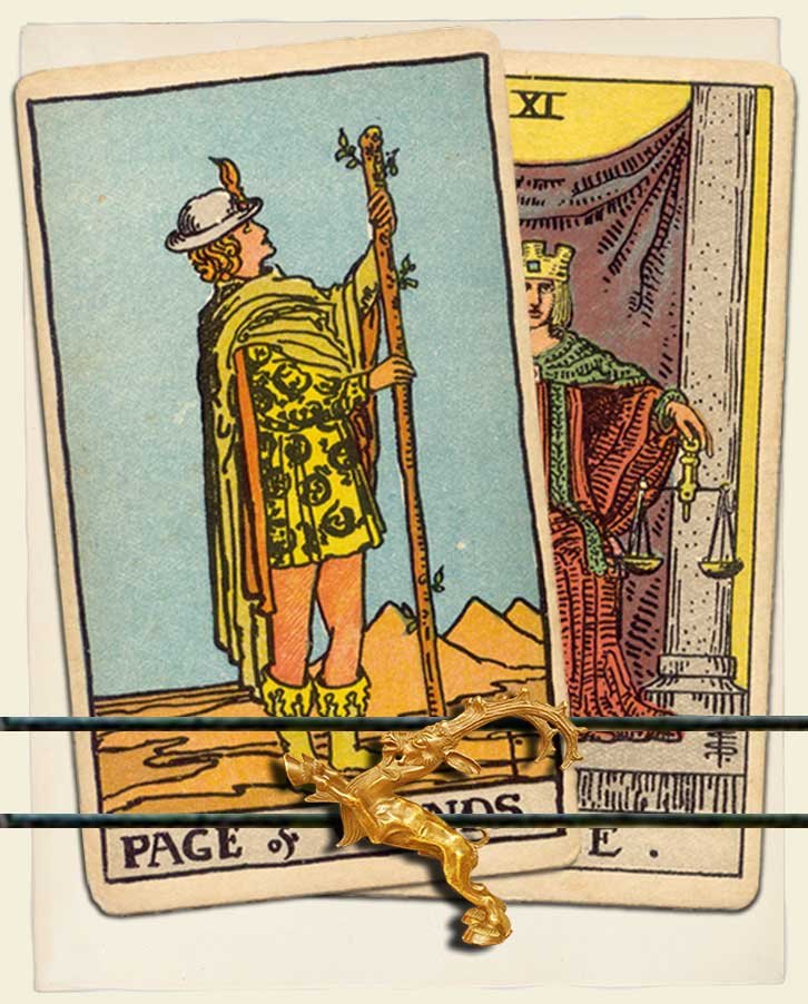 Page of wands and Justice combination gives a hint about a major event in your future. It is influenced by the arcane forces of (A) Fresh Ideas and (B) Fairness. An overwhelming sense of creativity has swept over you, and yet you aren’t being presented with the opportunities you believe you deserve. Have patience when it comes to creative fields or otherwise risk losing the spark of creative energy altogether. You are on an ongoing journey of manifestation and discovery. Allow time for each to reveal its true nature and purpose. Karma has a plan that cannot be rushed. There are no shortcuts to success.