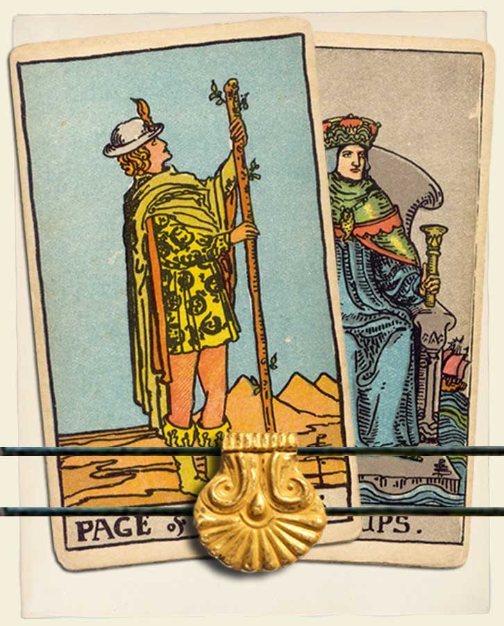 Page of wands and King of cups combination gives a glimpse into your near future. It is directed by the guiding influences of (1) inspiration and (2) balance between head and heart (as clarified by King of cups). To put it differently, it indicates that you should always seek for inspiration around you, even in the most unexpected aspects of life. Keep in mind, though, that you should control your initial excitement and find a balance between what your head and what your heart says to you. Head and heart should always coexist in order to make reasonable choices in life. Don’t interpret this as a lack of spontaneity though. Balance is the key.