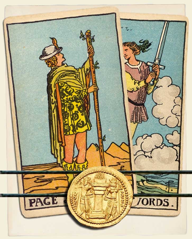 Page of wands and Page of swords combination gives an insight into your near future, which is influenced by the arcane forces of (A) Adventure and (B) Curiosity. The Pages tell me that good news may be on the horizon and you should take advantage of any opportunities that come your way. However, curiosity killed the cat, so think before you speak or try to snoop around, as hasty words and rumors may lead to regretted actions. Overall, this is a good time for planning, preparing, and exploring – just make sure you know what you want before making any decisions.