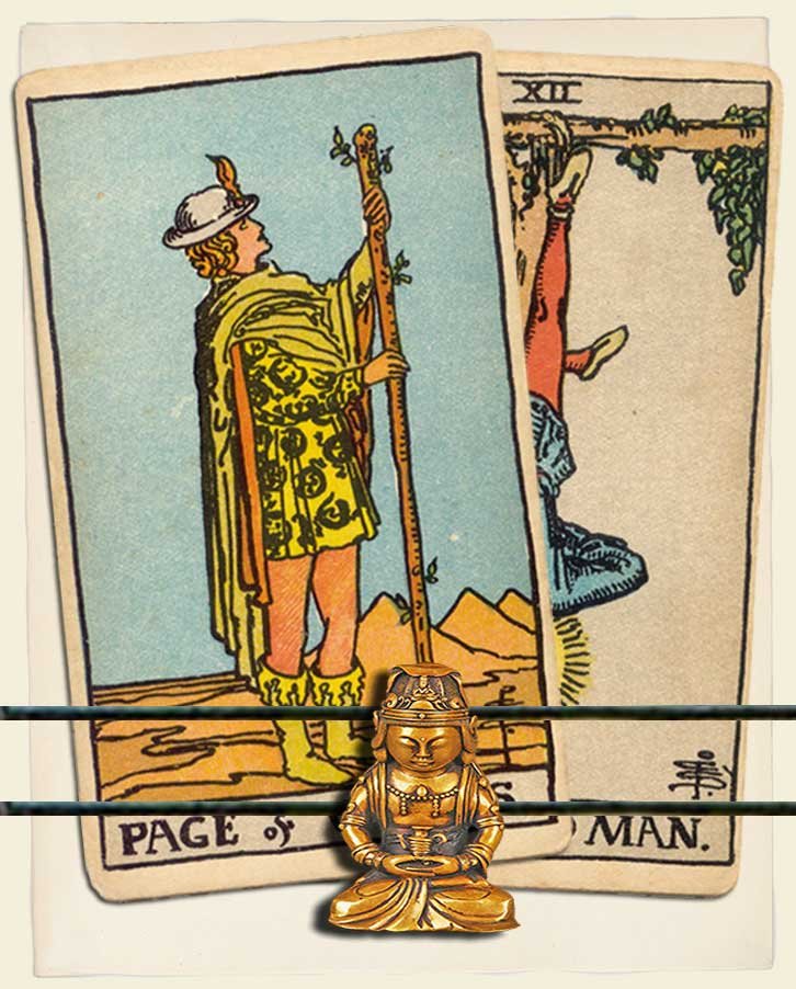 Page of Wands and The Hanged Man combo interpretation
