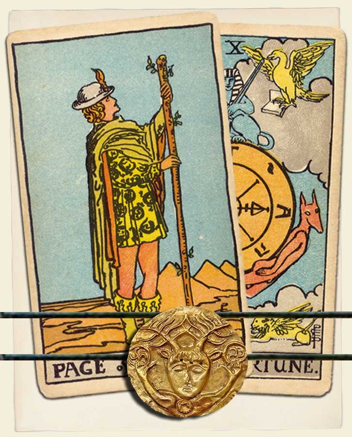 Well, my dear, it seems that the combination of the Page of Wands and Wheel of Fortune in matters of love and relationships is quite favorable indeed. You see, this combination suggests a sense of discovery coupled with cycles coming into play.