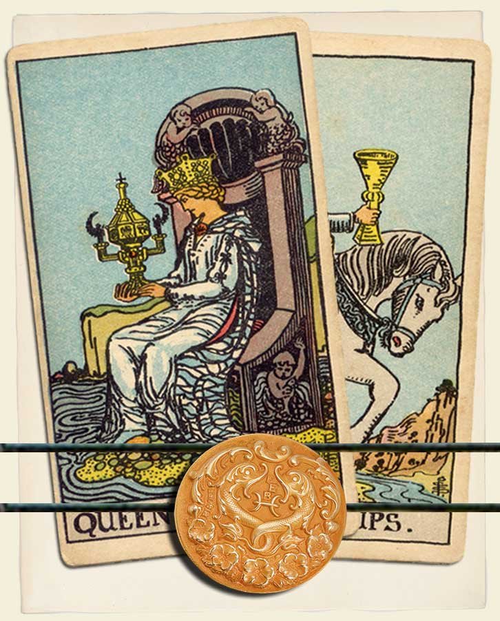 Queen of cups and Knight of cups combination gives an insight into a situation in your future, which is influenced by the arcane forces of compassion and graceful. How to interpret this tarot combination in practice? In essence you will soon be rewarded for you service to others. You’ve thought little of yourself for so long—but your good deeds haven’t gone unnoticed. Some might talk of karma, others luck— it will make little difference to you. You will simply look on it as a gift that money could never buy: the knowledge that you were loved and needed.