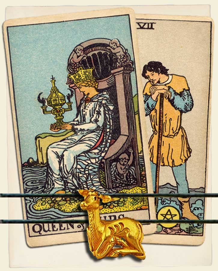 Queen of Cups and Seven of Pentacles combo interpretation