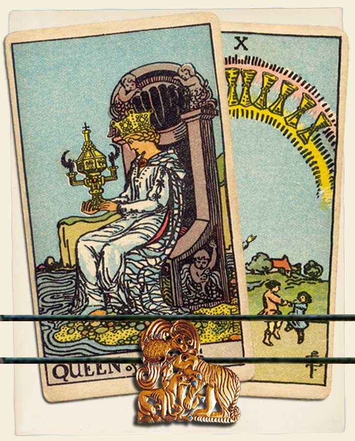 The Queen of cups and Ten of cups combination is an extremely positive sign for love and relationships. This combination signifies a supportive and harmonious relationship that will nourish the heart and emotions. Both cards represent caring, compassion, emotional stability, mutual support, healing, open-heartedness, intuition, infatuation, everlasting love and true love.