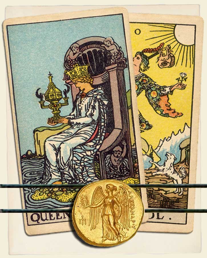 Queen of cups and The Fool tarot combination means that two tarot influences: 1) Compassion and 2) Spontaneity currently guide your decisions. This is a beautiful reading that hints at fulfilling new beginnings. The Queen of Cups is in tune with not only her emotions, but the emotions of those around her, and acts with empathy. Partnered with The Fool, who has a childlike optimism and goes with the flow, the message here is that by acting with compassion towards others, and being present in the moment, you will be able to seize new opportunities.