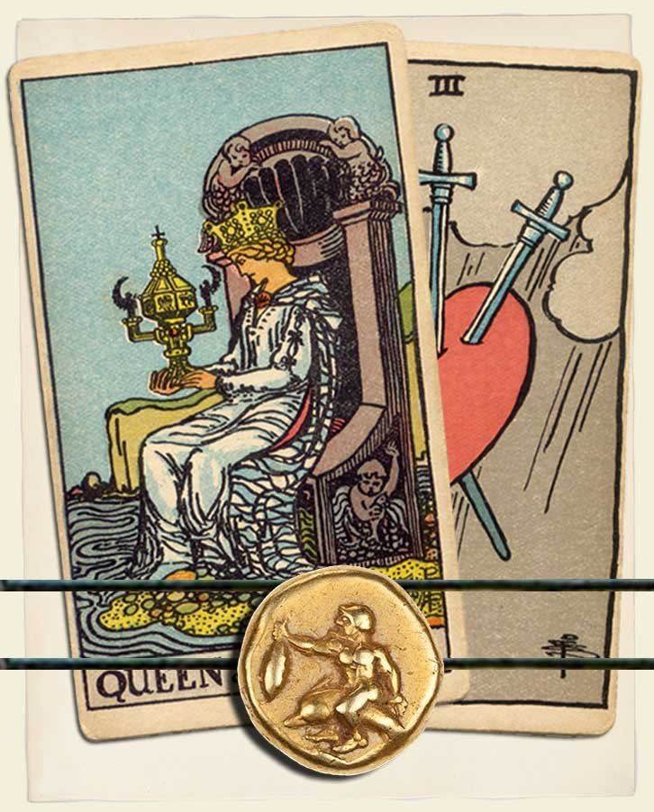 Queen of cups and Three of swords combination gives a hint about your near future. It is directed by the guiding influences of (1) COMPASSION and (2) HEARTBREAK (as clarified by Three of swords). This combination shows that you are compassionate and you have the ability to understand others’ emotions. But this also has a negative side. Your empathy has left you vulnerable to a betrayal. The loneliness you’re experiencing now will result in a period of suffering. However, you will survive and you will be stronger and wiser when you emerge from the gloom.