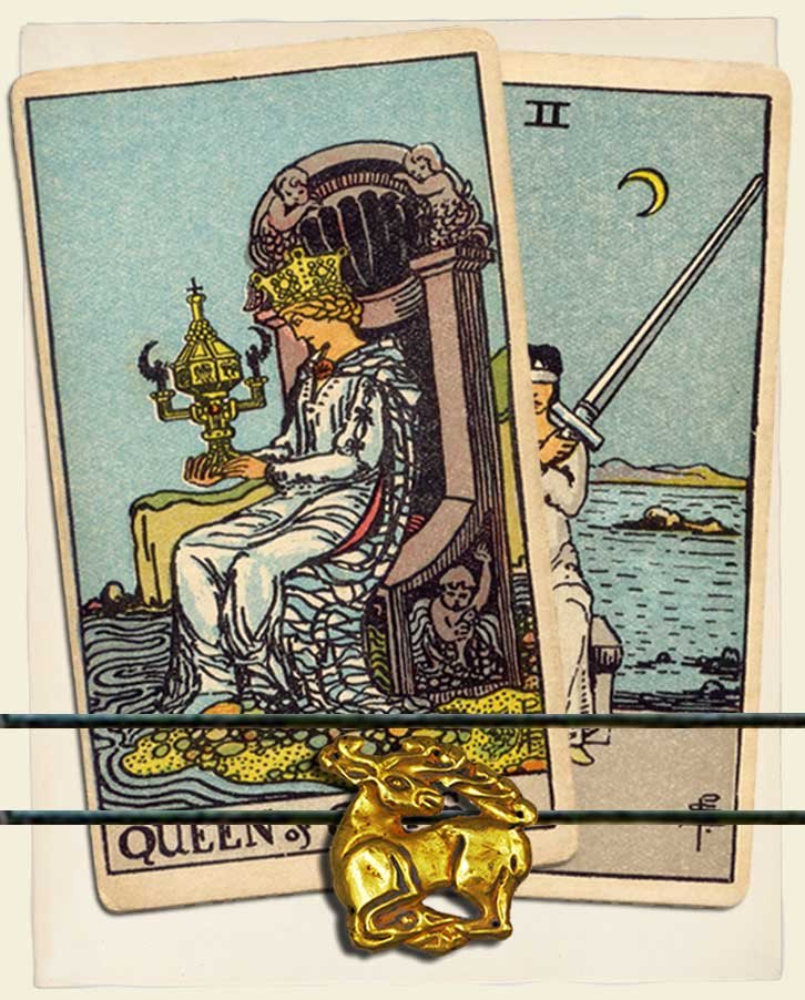 Queen of Cups and Two of Swords combo interpretation