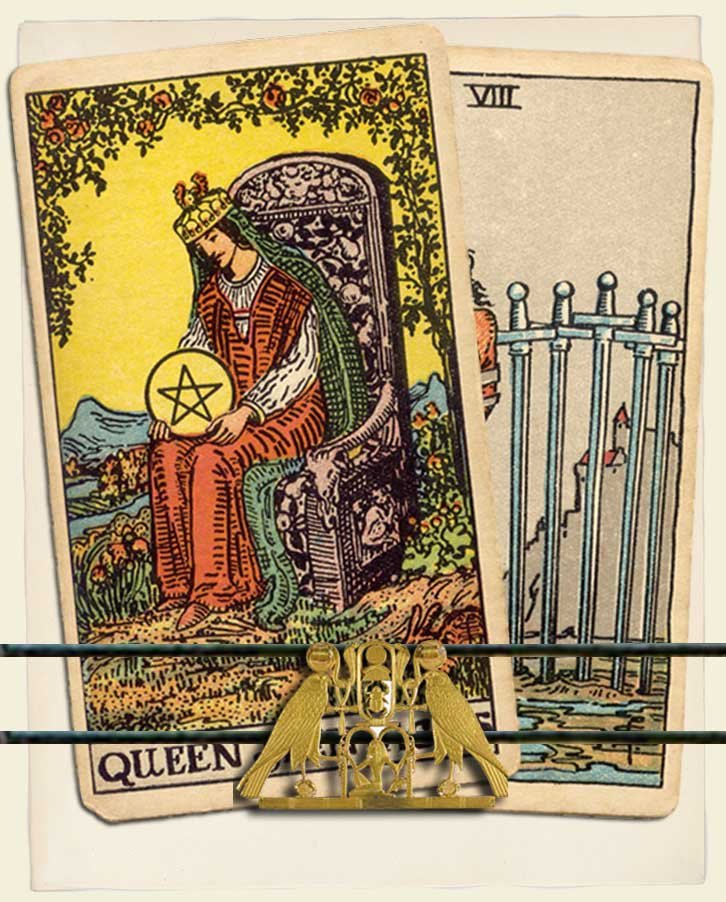 Queen of Pentacles and Eight of Swords combo interpretation