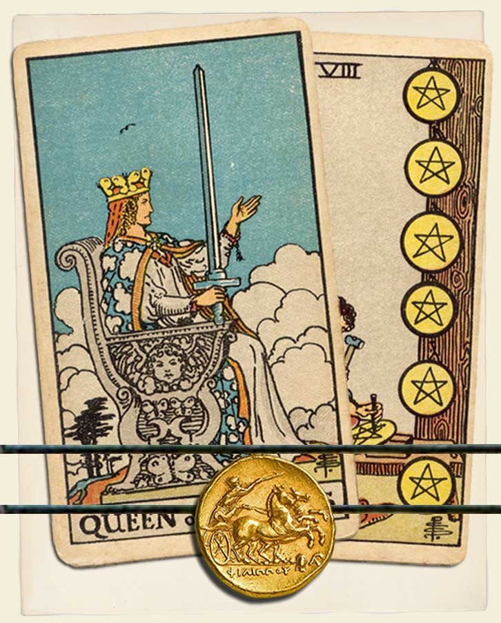 Queen of Swords and Eight of Pentacles combo interpretation