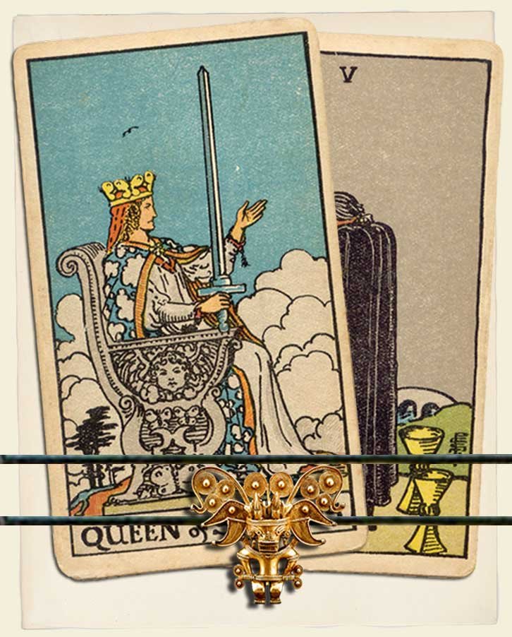 Queen of Swords and Five of Cups combo interpretation