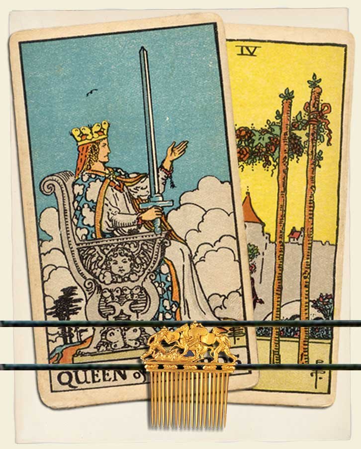 Queen of Swords and Four of Wands combo interpretation