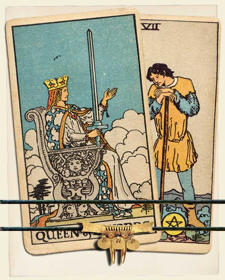 The Queen of Swords is all about being principled and having high powers of discernment. You won’t be fooled by anyone! And the Seven of Pentacles means you’ll be patient enough to wait for things to grow over time instead of rushing into anything.
