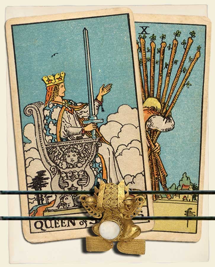 Queen of Swords and Ten of Wands combo interpretation