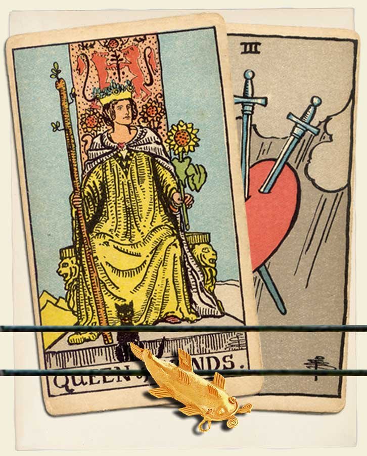 Queen of Wands and Three of Swords combo interpretation
