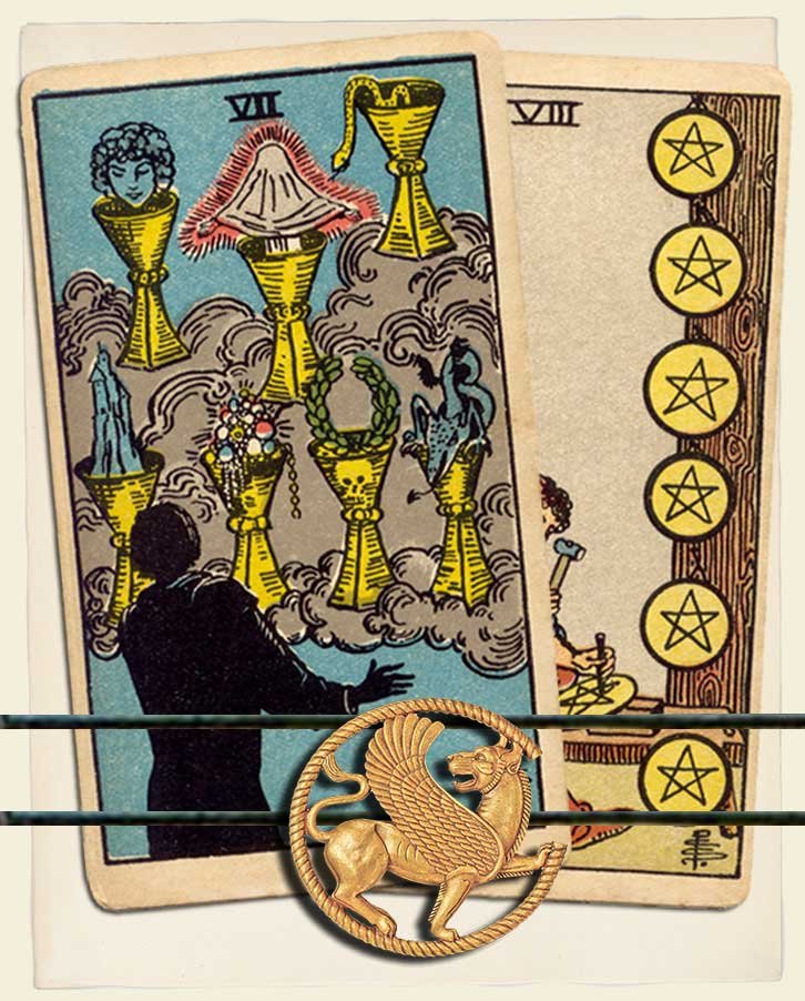 Seven of Cups and Eight of Pentacles combo interpretation