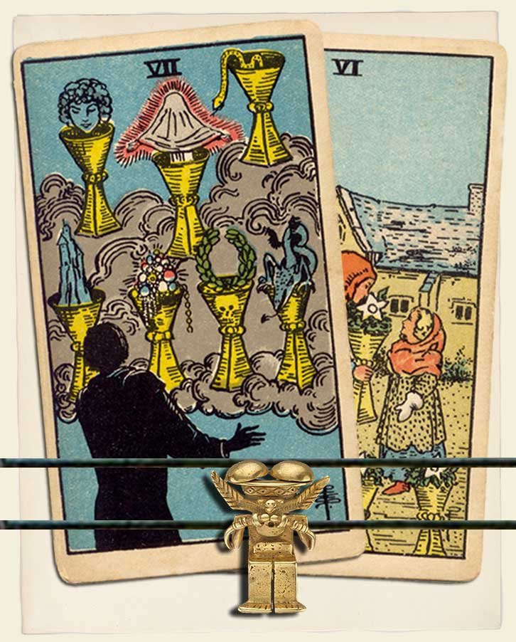 Seven of cups and Six of cups combo provides an insight into an event in your future. It is influenced by the tarot forces of (I) CHOICES and (II) MEMORIES. This combo indicates that sometimes, when you will have to make a decision, you will feel some kind of nostalgia of the old times, reminiscing about how joyful and calm old times were. Remember, though, that these are things of the past and you should not live in it or let it influence your present. Be alert of the choices that you made and make sure to not rely on nostalgia when making one.