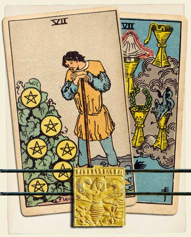Seven of Pentacles and Seven of Cups combo interpretation