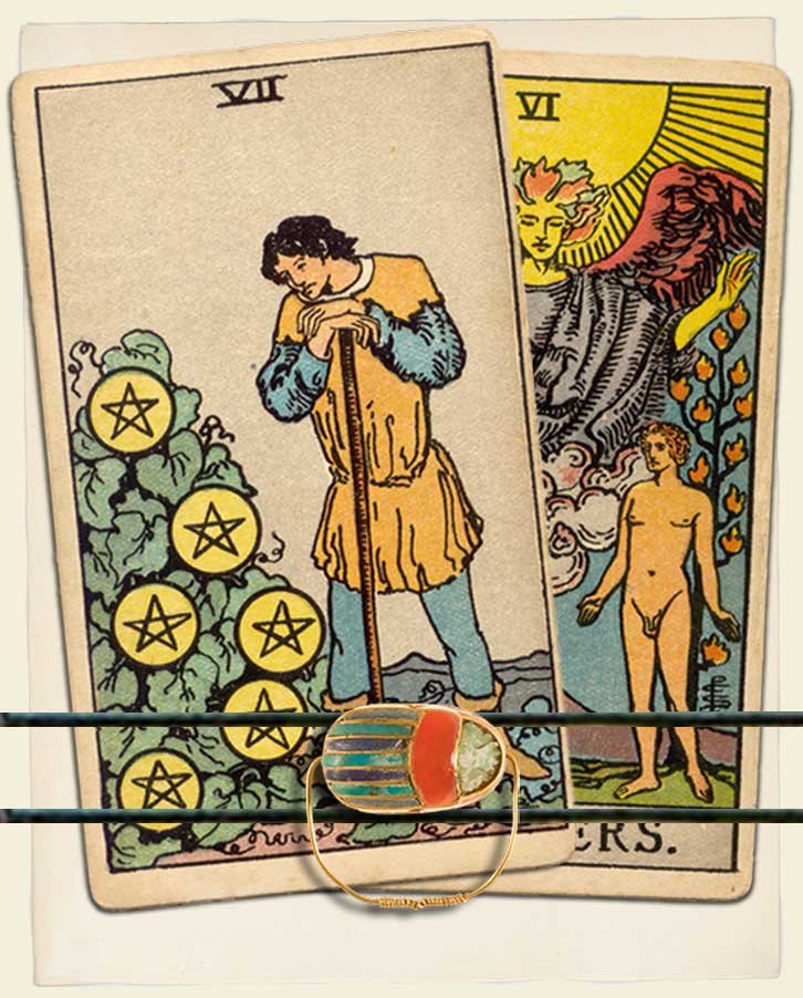 When it comes to love and relationships, the combination of Seven of Pentacles and The Lovers is a positive sign. This pairing indicates that two tarot influences, rewards and partnerships, are shaping your life path at this moment.