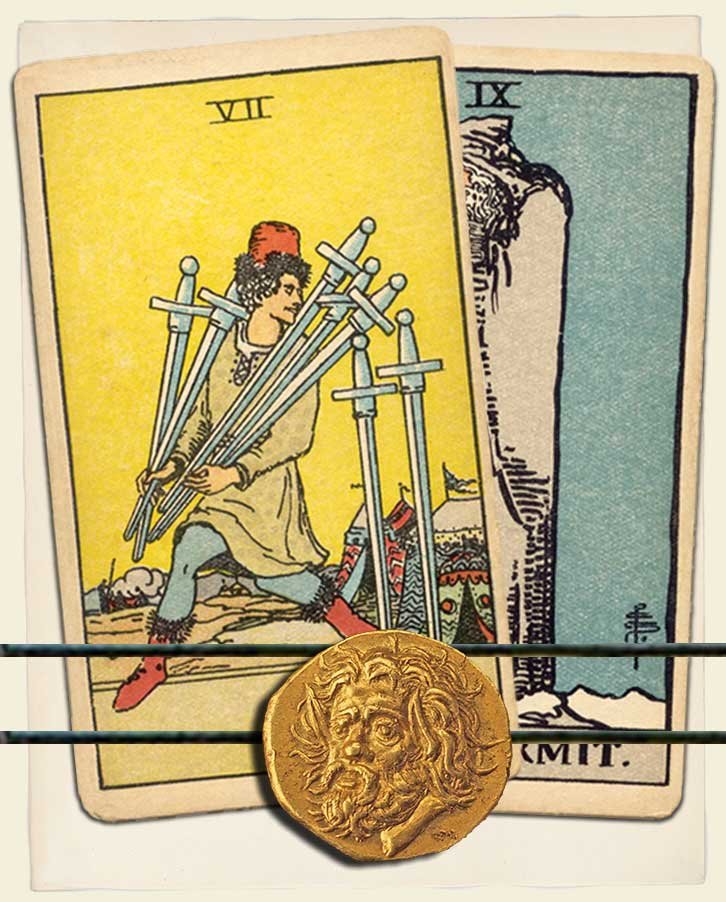Seven of swords and The Hermit tarot combination gives a clearer perception of a significant event in your future, which is influenced by the arcane forces of (1) TRICKERY and (2) SOUL-SEARCHING. The combination of these two cards warns of the dangers of deception and trickery. Whether you are the one lying, or you are being lied to, the result is the same – heartache. This is the time to do some soul-searching. The Hermit in this pair is showing that your soul needs to make an inner journey. This period of isolation and contemplation will allow you to face the world again with new hope.