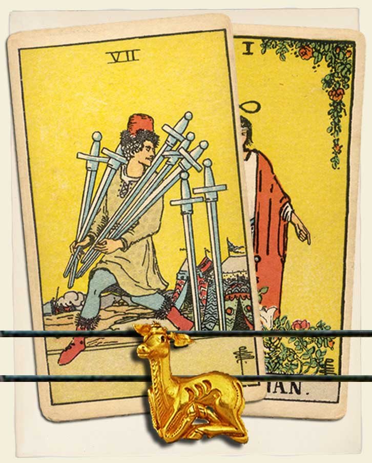 In terms of interpreting these cards’ influence on love life individually, The Seven of Swords has an extremely unfavorable effect on love as it represents lies and deception. It may indicate never-ending talking stages or betrayals where someone’s intentions are unclear. On the other hand, The Magician is very positive for love as it promotes manifesting what we desire through willpower and the Law of Attraction.