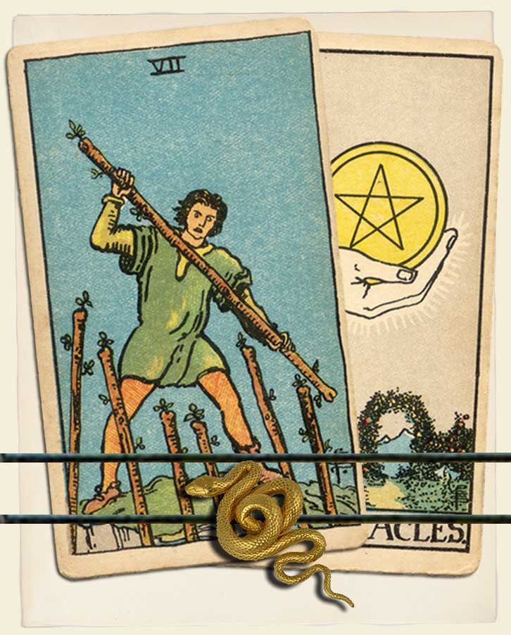 Seven of Wands and Ace of Pentacles combo interpretation