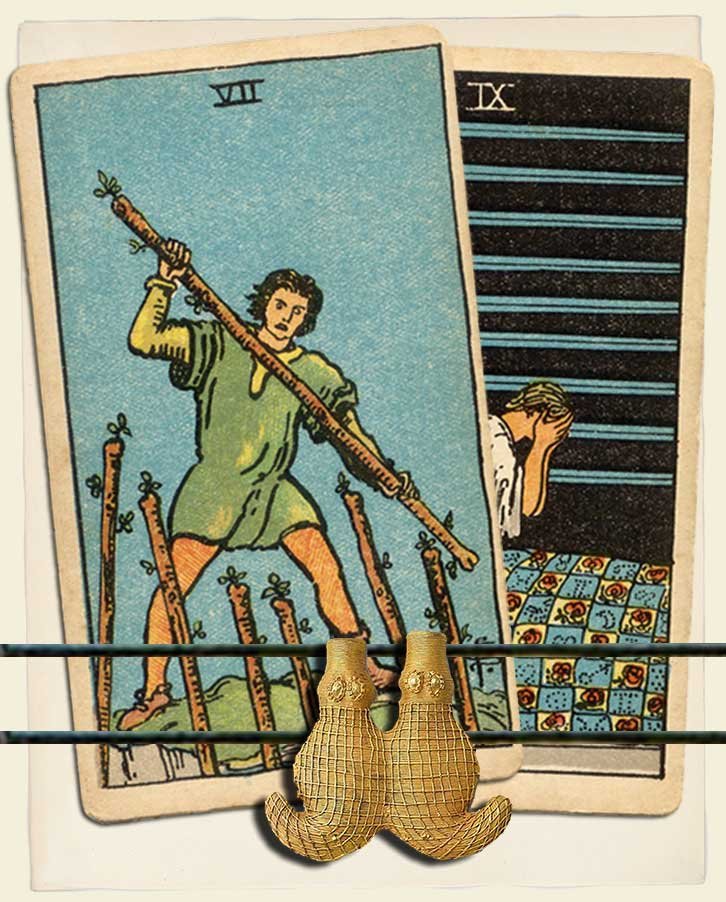 Seven of wands and Nine of swords combination gives you intuition about a major event in your future. It will take place as a result of (1) DETERMINATION (effect of Seven of wands) and (2) ANXIETY (effect of Nine of swords). You let y our mind guide you, and have done for far too long. It means now you head into new situations with an element of fear rather than hope or excitement. What do you think about when you see your future? It is time to start seeing the good in life rather than the dread of what could potentially go wrong.