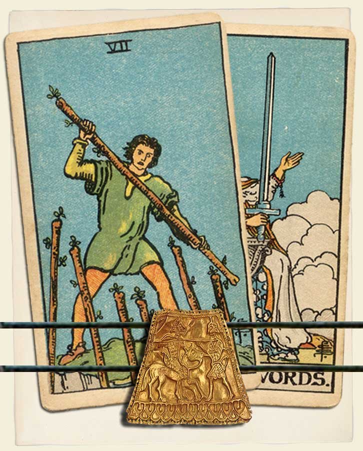 Seven of wands and Queen of swords combination is a sign that two tarot influences: (1) Stamina and (2) Independent are altering your life path today. You may find yourself feeling competitive or challenged in some way. This is a good time to tap into your inner strength and perseverance. You may need to be more honest with both yourself and others than usual, but this will help you move forward. Hold your ground and don’t be afraid to cut a bitch!