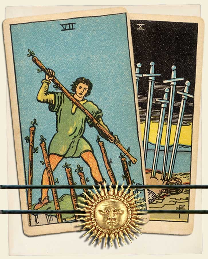 Seven of Wands and Ten of Swords combo interpretation