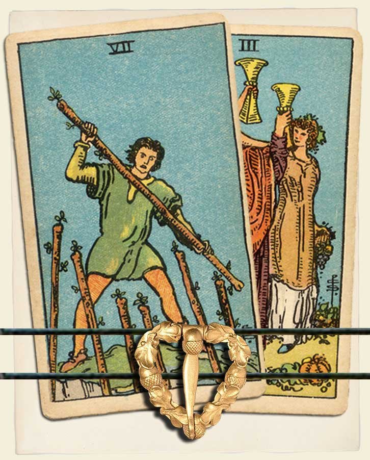Seven of wands and Three of cups combination means that two forces: A) CHALLENGE (Seven of wands effect) and B) FRIENDSHIP (Three of cups) are jointly affecting you today. When you see the Seven of Wands with the Three of Cups, there is ample opportunity to get together with friends and have some fun, but, unfortunately, there is also someone, or maybe even several someones, on the guest list that are spoiling for a fight with you. It is as if you have a sign on your back and every time you turn around, someone is kicking you, like you asked them to do it. Don‘t let it get you down. They pick on you because you are right and they know it, so don‘t worry. Just enjoy yourself.