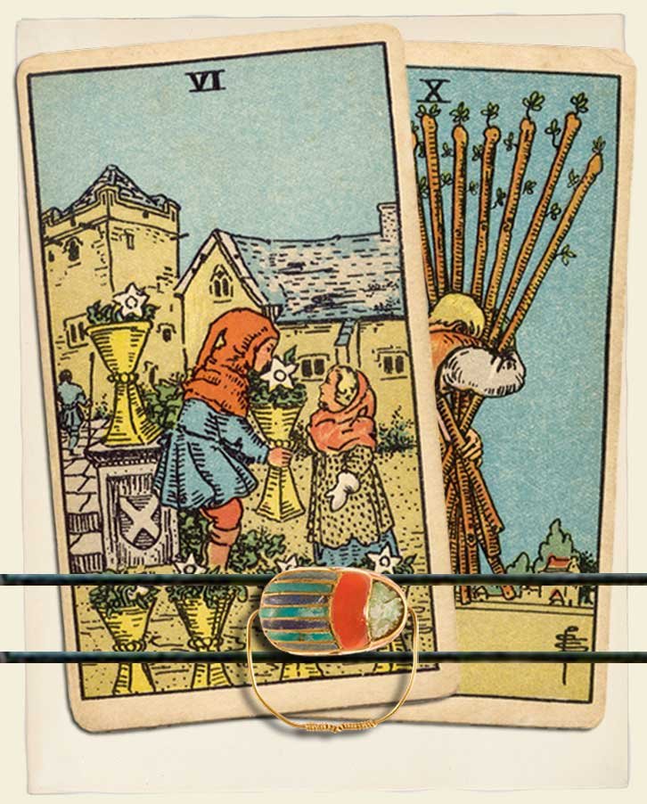 Six of cups and Ten of wands tarot combination means that arcane tarot forces: (1) Joy and (2) Burden (arcane influence by Ten of wands) are influencing you at the moment. What’s the advice of this pair? The Six of cups represents a high point in your life, where everything seems right with the world. You may be feeling so happy you can’t even sleep, but there is something weighing on your mind. This card indicates that it might be difficult for you to enjoy this state because there is some burden or obligation bothering you. The Ten of wands indicates that whatever this burden is will likely have to do with relationships or obligations related to them. If not resolved, these burdens could weigh heavily on you for a long time.