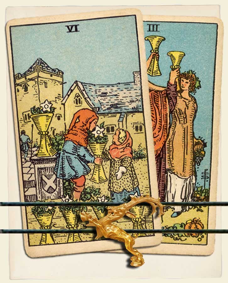 Six of cups and Three of cups combination gives a glimpse into a significant event in your future, which is influenced by the arcane tarot forces of (A) NOSTALGIA and (B) CREATIVITY. Are you drawn to memories from the past? Do you revisit old friends or places, or simply take pleasure in reminiscing? I get you, girl. This is a positive sign, as it suggests that you will find happiness and comfort in your memories. If you take on a creative project right now, you’ll be sure to make new memories that you will cherish for years to come. It’s easy to escape into the past, but try to look forward as well.