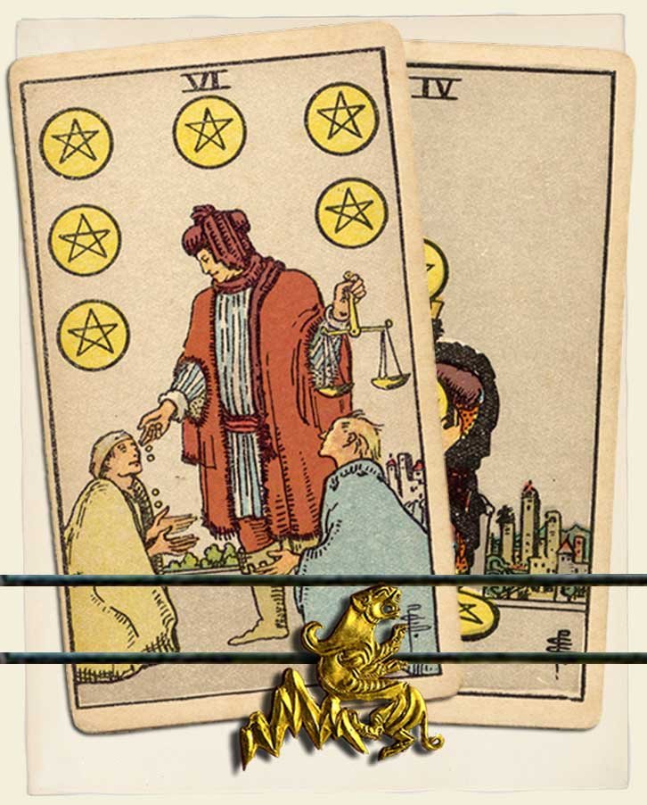 Six of Pentacles and Four of Pentacles combo interpretation
