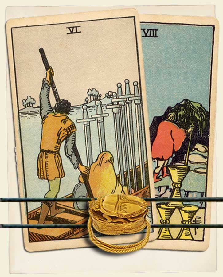Six of swords and Eight of cups tarot combination gives a glimpse into your actual state and close future. It will come to pass from the combined effect of (A) CHANGE (effect of Six of swords) and (B) LEAVING BEHIND (effect of Eight of cups). Nobody is a particular fan of change, because ultimately there are things we need to leave behind when we move on. Untying that baggage can be challenging, especially when it is familiar and once loved. What you need to remember, is that it is not loved any more. Let it go.