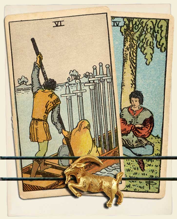 Well, darling, if you’re asking about the Six of Swords and Four of Cups combination in regards to love and relationships, I must say it’s a rather gloomy sign. The arcane forces at play here are distance and meditation. It seems that this separation has taken quite a toll on you both, but there’s still hope. However, there may be some pride and stubbornness standing in your way.