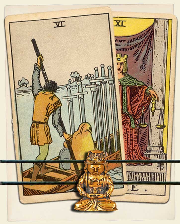 Six of swords and Justice combination gives a glimpse into a situation in your future. It is directed by the guiding influences of (1) moving on and (2) fairness (as clarified by Justice). What’s the advice of this pair? The Six of Swords represents walking away from something that isn’t working for you, so you can start over fresh. This card indicates that you may have to leave behind some things or people who haven’t treated you well. That will be difficult, because it means leaving friends and perhaps even loved ones behind. If you do make this decision, take care not to hold onto bitterness or resentment as part of your process of moving forward. The presence of the Justice card indicates that whatever fair outcome comes out of this transition won’t come easily or without effort on your part.