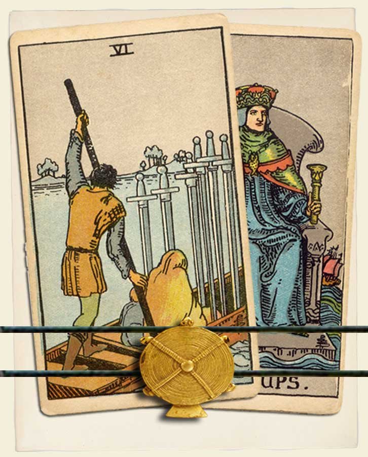 Six of swords and King of cups tarot combination means that two forces: A) Accepting Lessons (Six of swords) and B) Emotionally Balanced (King of cups) have influence on you today. In a nutshell, this is a combination of transition. Transition is supported by the influence of the Six of Swords, which is all about moving on and leaving things that no longer serve us behind. We can also accept the lessons that these things taught us with this card. The King of Cups talks of emotional balance and control as well as transition – through this time of change, as long as we maintain balance in our emotions the King will also lend us the energy of compassion, which will carry us through any road or path we encounter.