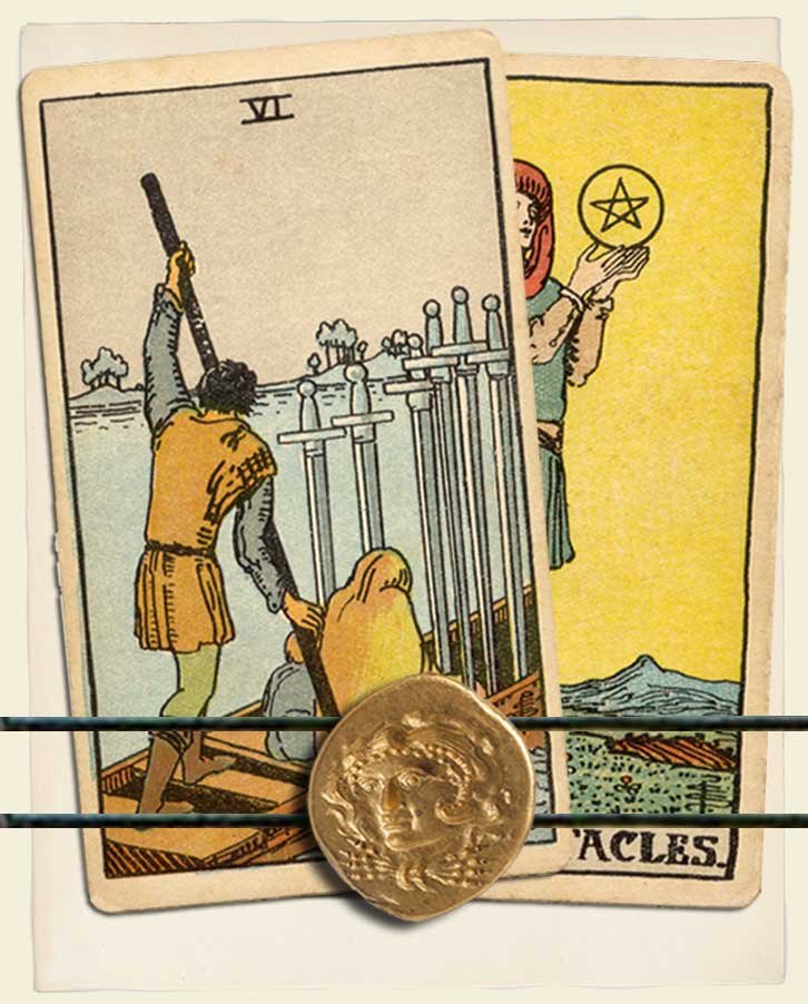 Six of swords and Page of pentacles tarot combination means that two tarot influences: 1) Releasing Baggage and 2) Skill Development are a guiding force on your decisions. What’s the advice of this pair? The Six of swords represents walking away from something you’ve put a lot into, often because someone has hurt or disappointed you. This card indicates that you may need to take some time off to process what happened before moving forward with any new projects. The Page of pentacles is the card of the student and indicates that there is much for you to learn in order for your dreams to come true. You have plenty going on right now, so be sure not to neglect your studies as well as other obligations like family and friends who care about you.