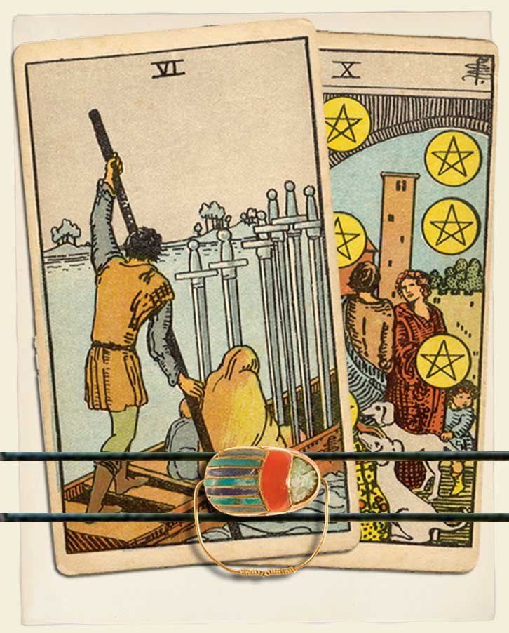 Six of swords and Ten of pentacles tarot combination indicates that arcane tarot forces: 1) Releasing Baggage and 2) Financial Security are altering your life path at this reading. You’ve been through a lot. Betrayals, lies, losses hurt you. You went through a period of depression. I see that you are trying to keep yourself busy with your work to distract yourself and if you continue like this, you will experience a great relief financially. You can finally get what you’ve been dreaming of.