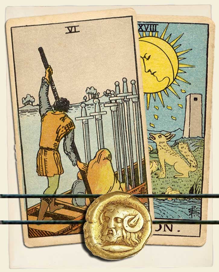 Six of swords and The Moon combination gives a hint about a significant event in your future, which is influenced by the arcane tarot forces of (A) CHANGE and (B) INTUITION. In essence, you will soon be called on to follow your instincts. True, you’ve sensed something on the horizon for some time now. But, if these cards are to be believed, your response has been all wrong. You’ve taken other people’s word for it. Well, look at it like this: sometimes, it’s better to disregard the weather forecast and follow your nose. Believe in yourself and the next steps will become clear.